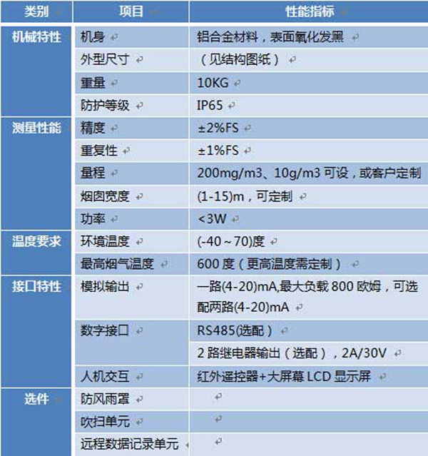 功能特點:采用激光背散射原理,不怕煙道的機械振動及煙氣溫度不均造成的折射率不均造成的光束擺動