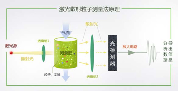 利用激光光束照射到含塵氣流上,使光束產(chǎn)生散射光,粉塵濃度越高,產(chǎn)生的散射光強(qiáng)度越大,由此測出粉塵濃度。光散射法測定公共場所空氣中可吸入顆粒物濃度,具有快速、靈敏、穩(wěn)定性好、體積小、重量輕、無噪聲、操作簡便、安全可靠等優(yōu)點。一方面該方法具有較 高靈敏度而需要的樣品量少,并可省去或者簡化樣品處理步驟,因此采樣時間和分析時間均可大大縮短;另一方面,該方法無需樣品儲存,從而避免或減少了分析方法中的各種可能的誤差因素。