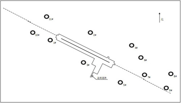 根據業主方要求,結合監測期間的主導風向,我們布設了11個點位,點位距跑到中心線(延長線)距離見表,點位具體分布見圖。