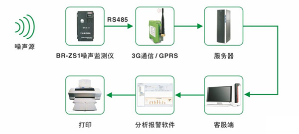 現(xiàn)場(chǎng)噪聲數(shù)據(jù)采集裝置及LED顯示屏實(shí)時(shí)將現(xiàn)場(chǎng)噪聲數(shù)據(jù)采集到智能監(jiān)控終端,數(shù)據(jù)通過(guò)網(wǎng)絡(luò)傳輸?shù)奖O(jiān)控中心,完成統(tǒng)一管理、數(shù)據(jù)存儲(chǔ)、并實(shí)時(shí)顯示在室外的LED屏上,通過(guò)ZS3型噪聲自動(dòng)監(jiān)測(cè)系統(tǒng)將噪聲分貝數(shù)據(jù),噪聲聲頻數(shù)據(jù),設(shè)備數(shù)據(jù)等發(fā)到監(jiān)控調(diào)度中心調(diào)度中心實(shí)現(xiàn)對(duì)噪聲數(shù)據(jù)的接收、存儲(chǔ)、顯示、報(bào)表打印輸出等信息管理,并支持實(shí)時(shí)數(shù)據(jù)與歷史數(shù)據(jù)讀取。