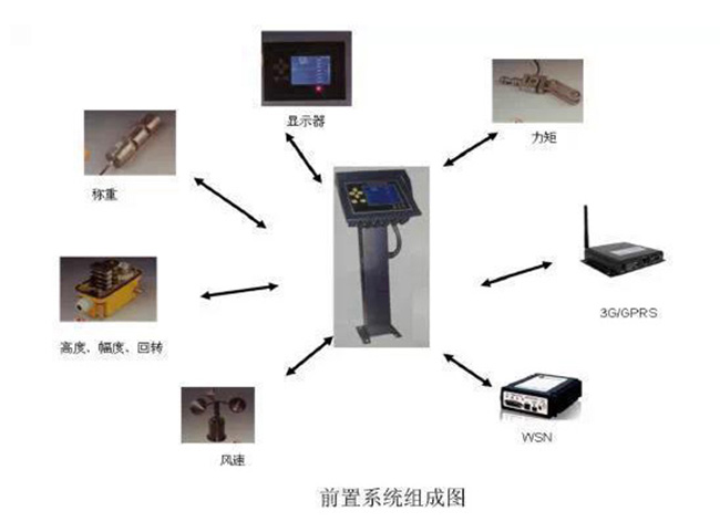 在塔式起重機(jī)安全監(jiān)控管理系統(tǒng)中,前置系統(tǒng)通過高精度傳感器采集塔機(jī)的風(fēng)速、載荷、回轉(zhuǎn)、幅度和高度信息,控制器根據(jù)實(shí)時(shí)采集的信息做出安全報(bào)警和規(guī)避危險(xiǎn)的措施,同時(shí)把相關(guān)的安全信息發(fā)送給服務(wù)器,塔機(jī)的監(jiān)管部門可通過客戶端查看到網(wǎng)絡(luò)中每個(gè)塔機(jī)的運(yùn)行情況。塔機(jī)與塔機(jī)之間采用WSN進(jìn)行實(shí)時(shí)通信,解決群塔間相互碰撞的問題。