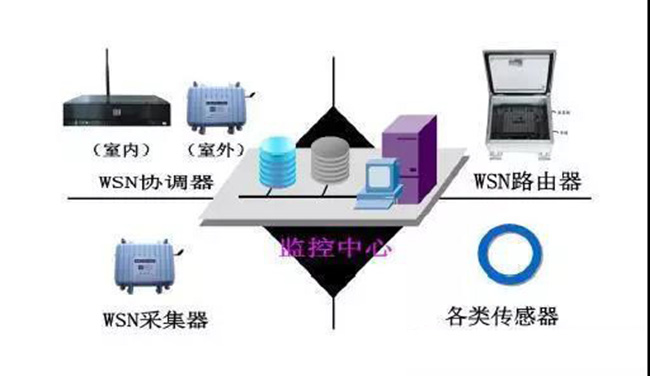 建設(shè)工程結(jié)構(gòu)安全施工實(shí)時(shí)監(jiān)測(cè)系統(tǒng)是基于具有自主知識(shí)產(chǎn)權(quán)的無線傳感網(wǎng)應(yīng)用系統(tǒng),該系統(tǒng)主要由監(jiān)控中心管理軟件、WSN協(xié)調(diào)器、WSN路由器、WSN采集器以及各類測(cè)量傳感器組成。