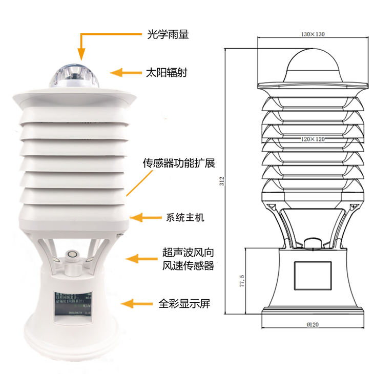 1. 一體化結(jié)構(gòu)設(shè)計(jì):采用一體化設(shè)計(jì),實(shí)現(xiàn)了太陽輻射、溫度度、風(fēng)速風(fēng)向、氣壓、降雨量、氣體、噪聲粉塵等多種要素同步監(jiān)測。同時(shí)設(shè)備支持定制,可根據(jù)需求增減監(jiān)測要素。