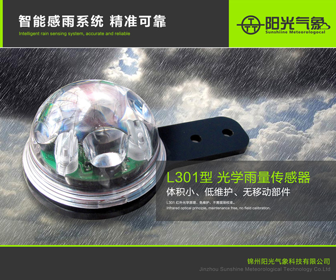L301型光學(xué)雨量傳感器是錦州陽光研發(fā)的新型光學(xué)雨量傳感器,使用光束的紅外光檢測觸及外表面的雨滴,它比一個(gè)典型的翻斗式雨量計(jì)要靈敏100倍,并單個(gè)計(jì)數(shù)雨滴,發(fā)送脈沖信號(hào)。