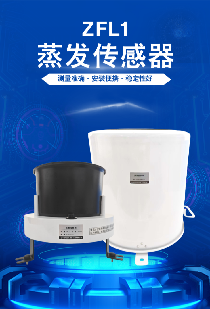 ZFL1型蒸發傳感器是一款專門用于測量液面蒸發量的專業儀器,具備測量精度高、性能穩定、線性度好、安裝便捷和操作簡便等顯著特點。為確保傳感器的長期戶外穩定工作,其主體采用不銹鋼材質,并噴有防腐涂層。其結構設計科學合理,外觀質量優良,并配備有保護罩。